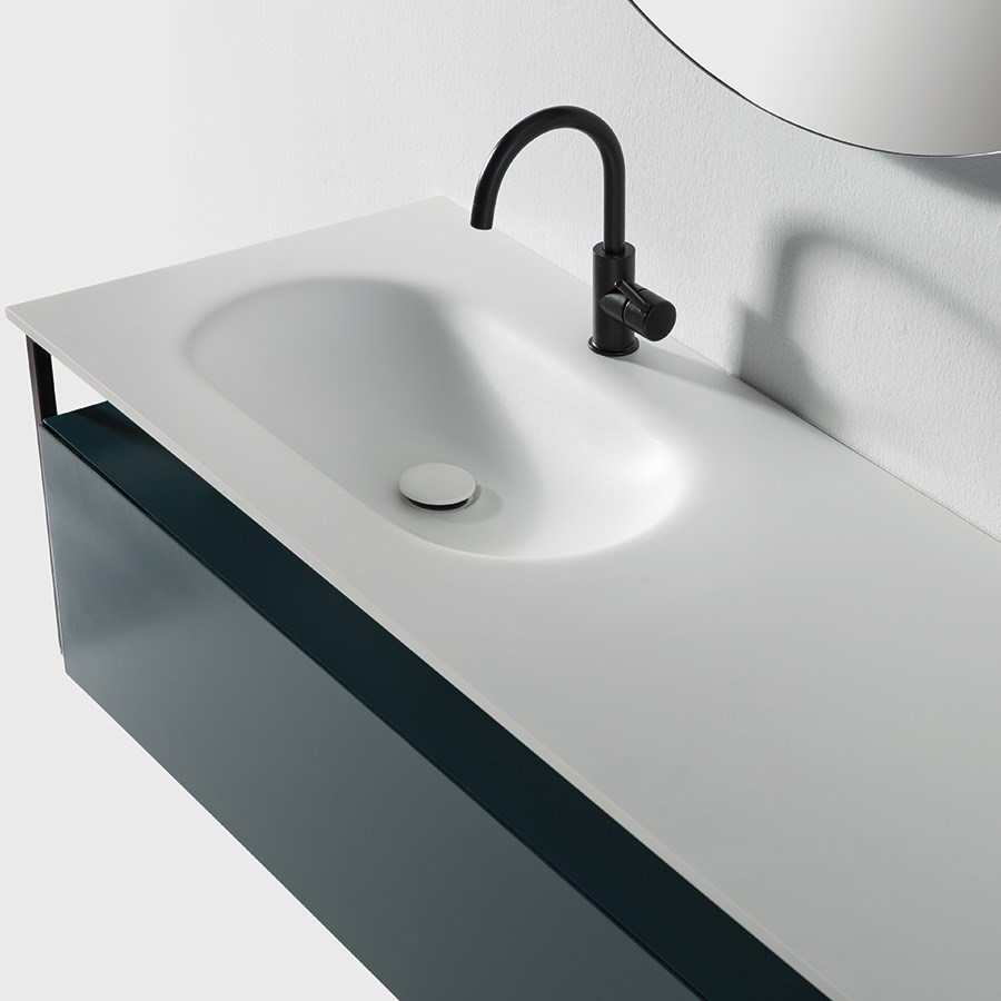 - Bordplade med integreret håndvask i venstre side fremstillet i sten komposit