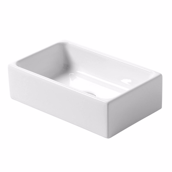 Denne lille håndvask er glaseret på alle fire sider, så du kan placere den frit på bordplade.