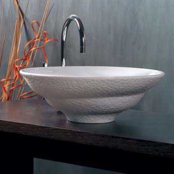 Lille smart håndvask som spidser ind ned mod bordpladen.
