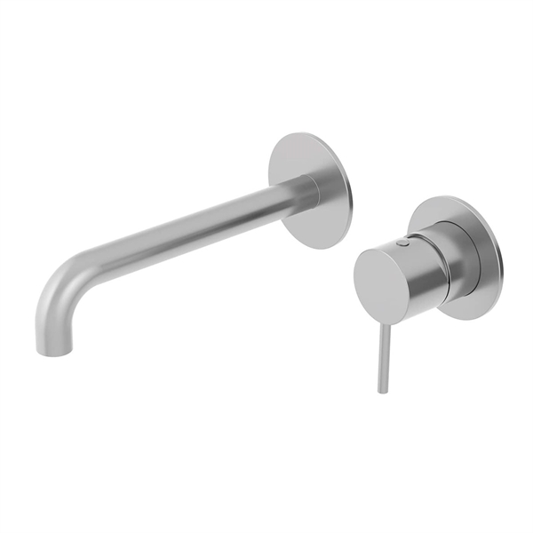 Blandingsbatteri til vægmontering i massiv 316L rustfrit stål med blank poleret overflade