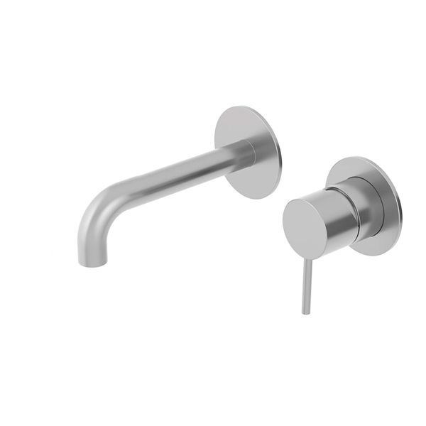 Blandingsbatteri til vægmontering i massiv 316L rustfrit stål med blank poleret overflade