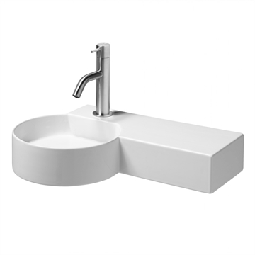 Med vores lille håndvask mezzo får du en flot rund håndvask med en lille bordplade i højre side.