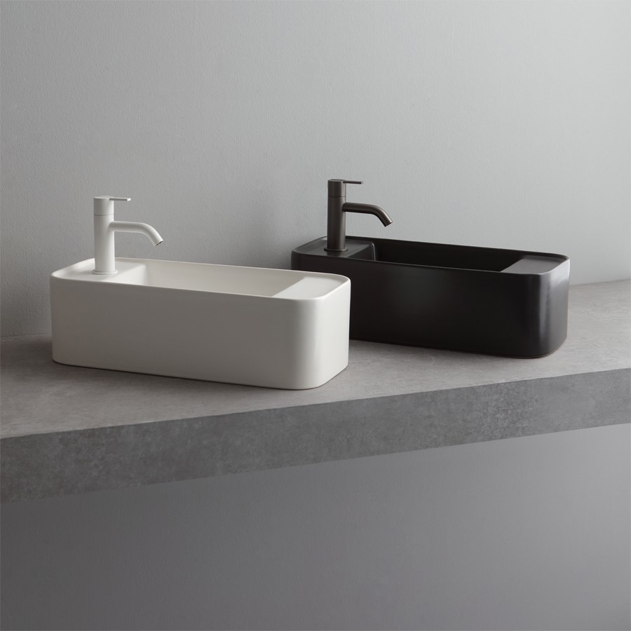 små håndvaske til i mat sort og mat hvid porcelæn