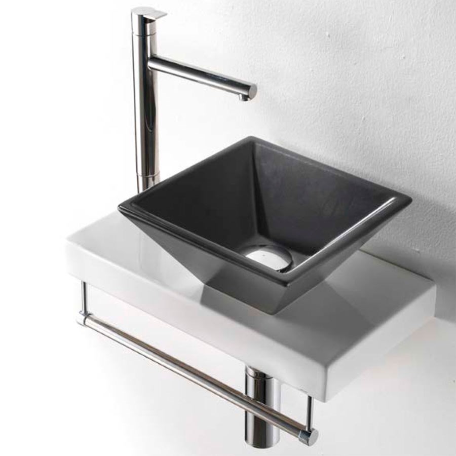 Her har du en flot lille sort håndvask til det lille badeværelse eller toilet .
