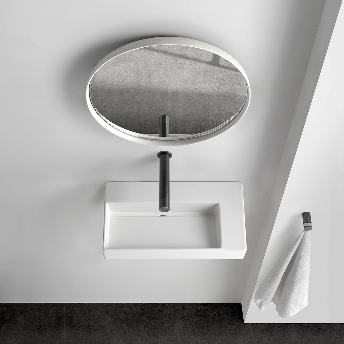 Med Unplug mini stand håndvasken i hvid porcelæn, i målet 45,5x25 cm, bliver badeværelset ikke blot et funktionelt sted, men også et sted med smukt design.