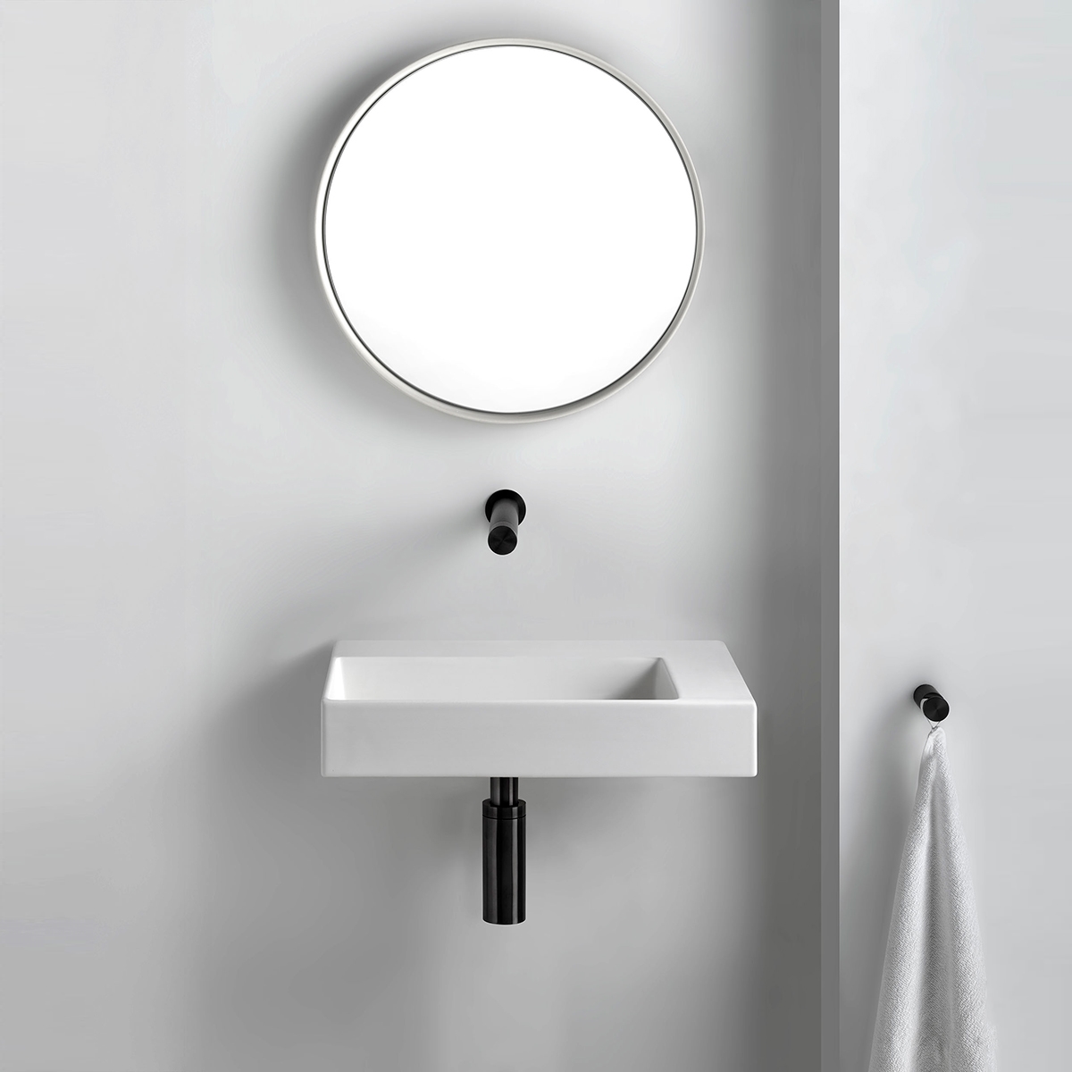 Lille håndvask Unplug Mini stand 45,5x25 cm i blank hvid porcelæn med aflægningsplads