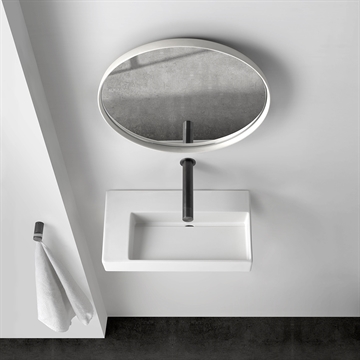 Håndvasken kan hænges på væg, stilles på en bordplade eller et badeværelsesmøbel.