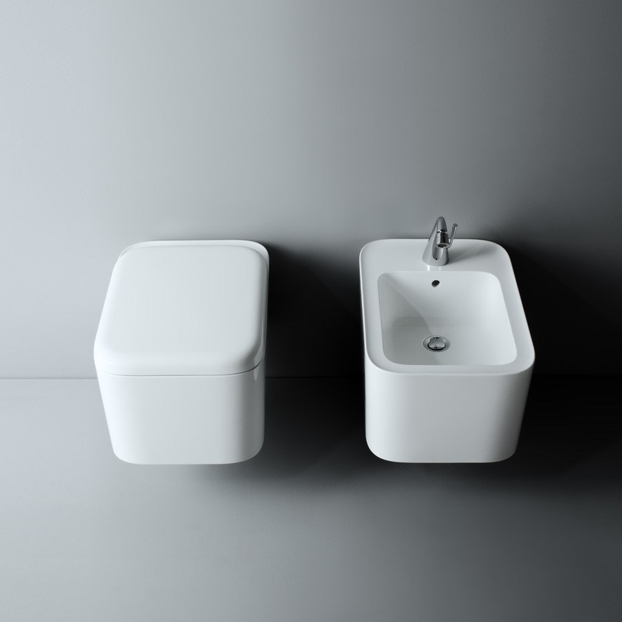 Firkantet Toilet og bidet fra Cameo serien fra Italienske Valdama